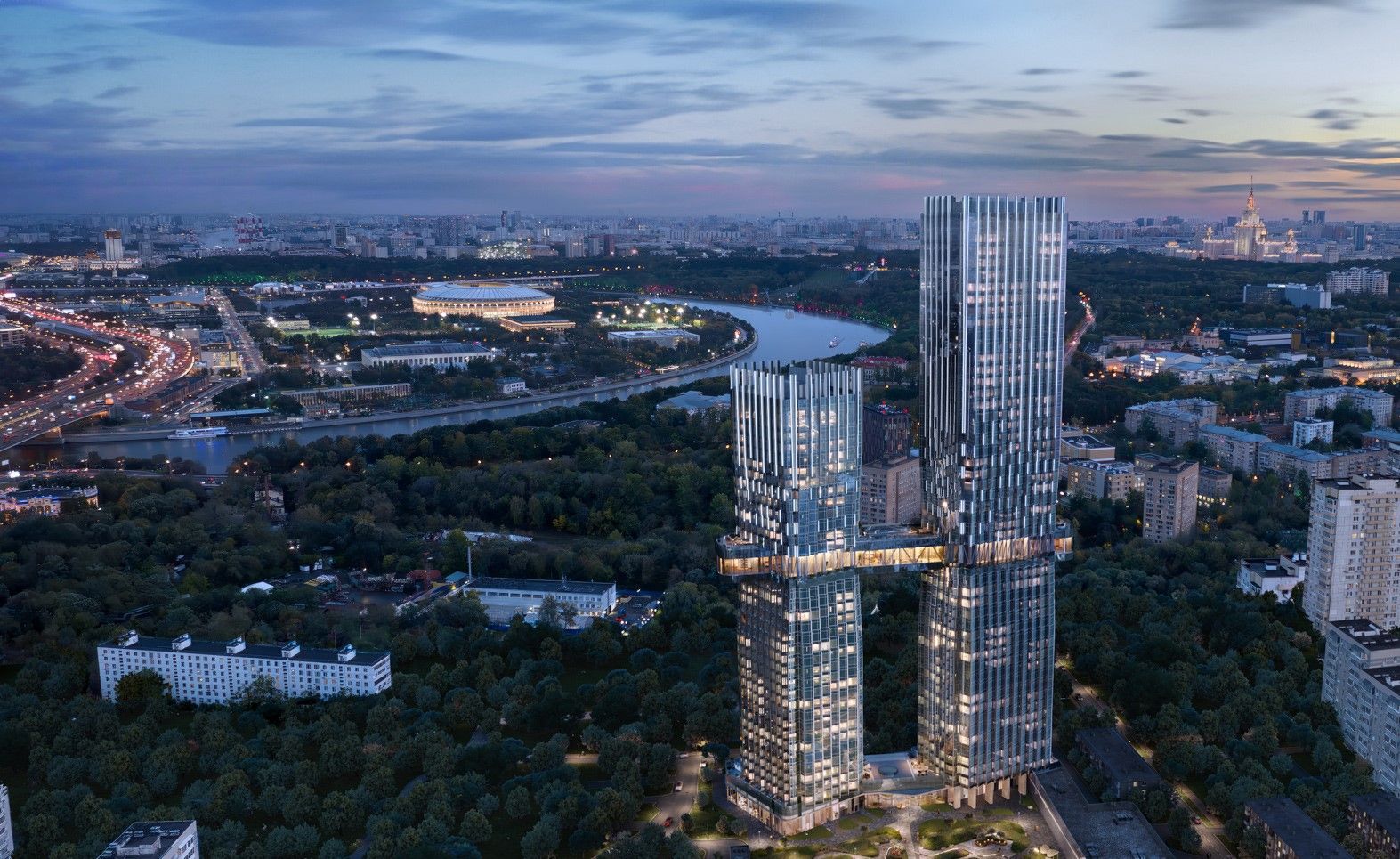 Локация подчёркивает статус проекта. Запад Москвы — район с сильной экологией и отсутствием промышленных зон. В пешей доступности — Воробьёвы горы, долина реки Сетунь, Новодевичьи пруды. Рядом — Лужники, Поклонная гора, Москва-Сити.