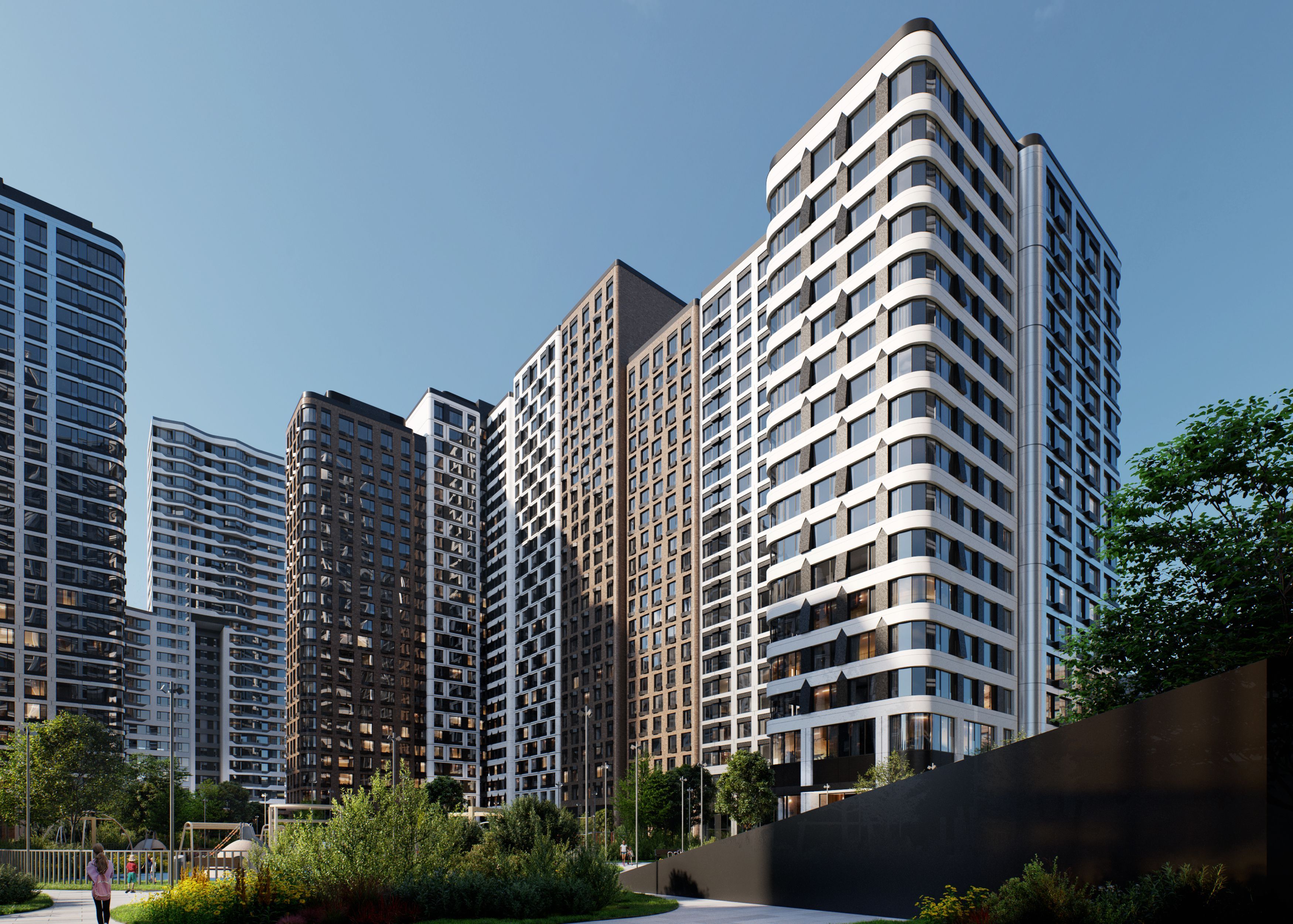 Проект создан архитектурной мастерской ATRIUM по дизайн-коду британских бюро LDA Design и UHA London. Его архитектура не стремится быть похожей на другие — бионические фасады с эффектной подсветкой, современные материалы и функциональный дизайн создают выразительный, но сдержанный облик. Это среда, где эстетика поддерживает повседневный комфорт.