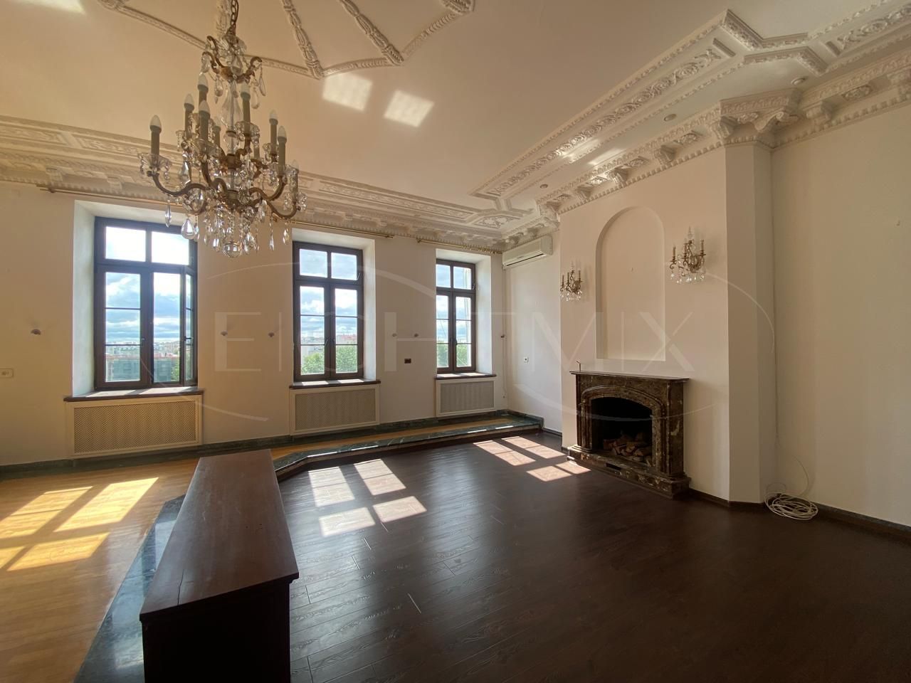 Высота потолков 3,5м. Выполнен качественный ремонт, встроенная кухня оснащена современной бытовой техникой. Пол: паркет совмещенный с мрамором. Так же в отделке квартиры использована оригинальная лепнина. Панорамный вид из окон. Во дворе дома расположен отапливаемый гараж относящийся к квартире.