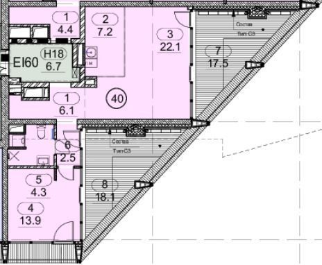 Жилое пространство освобождено от мебели, что позволяет поставить необходимые именно вам предметы интерьера и обстановки!