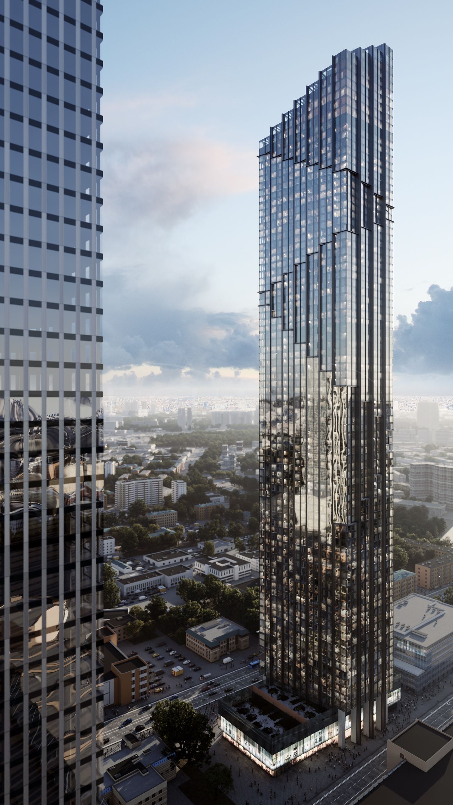 Автор архитектурной концепции «Дом Дау» - именитое бюро СПИЧ: премиальный жилой небоскреб с квартирами, 4-уровневым подземным паркингом и 3-этажным стилобатом. Приватный внутренний двор разместится на кровле стилобата, здесь появится собственный secret garden, доступный только для резидентов башни. С другой стороны башни, на этом же уровне, кровле 3-этажного стилобата, будет оборудована зона для йоги и workout. На террасе второго этажа предусмотрена детская площадка.