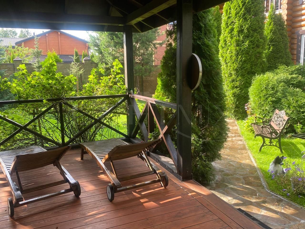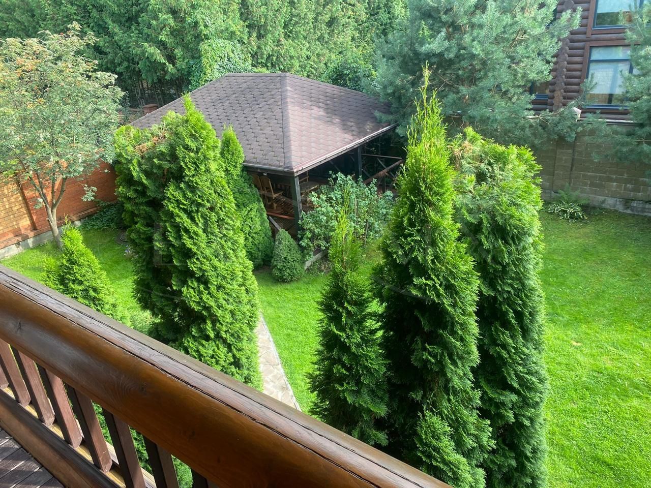 Просторный участок с мангальной зоной, отдельно стоящей беседкой и парковкой. Высажены плодовые деревья, газон ухожен.