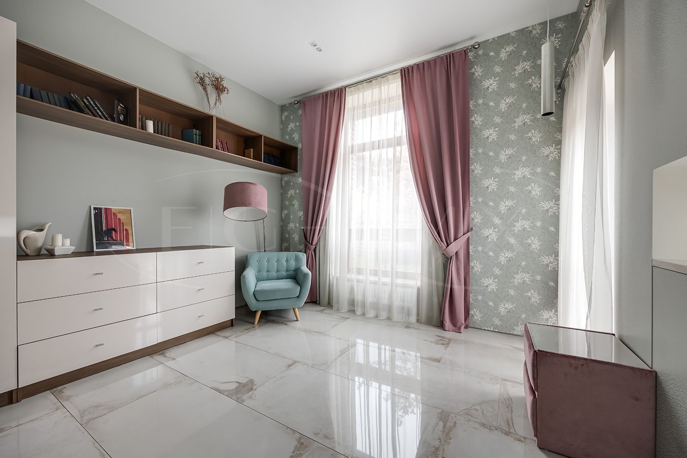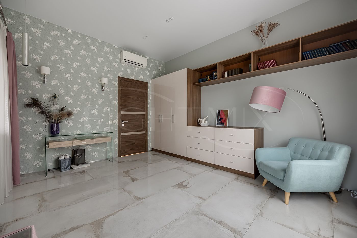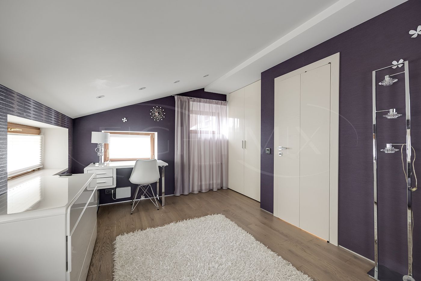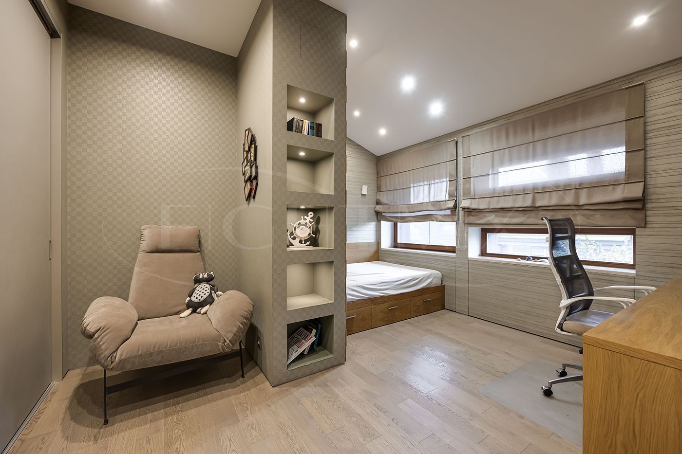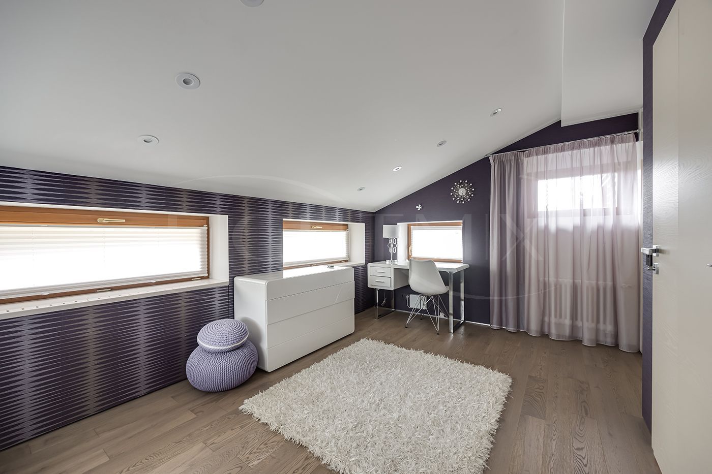 Гостевая спальня с выходом на просторный балкон, три детских комнаты из одной детской выход на балкон, санузел с двумя раковинами, кладовая комната.