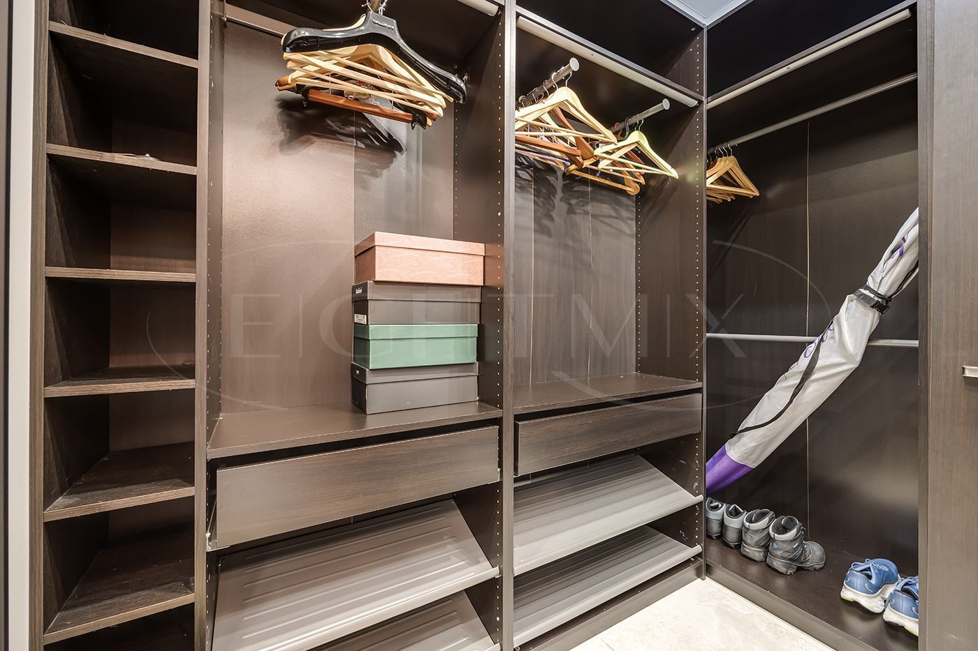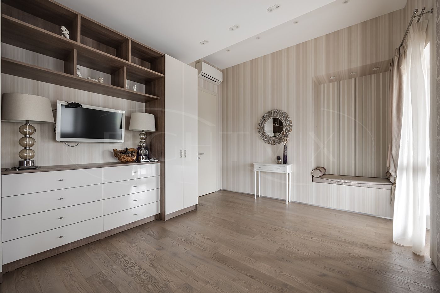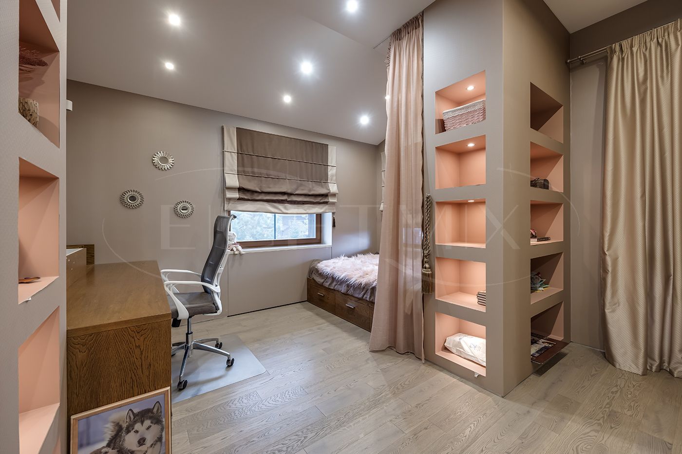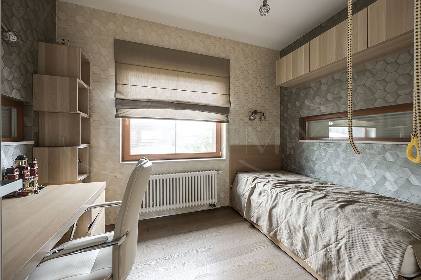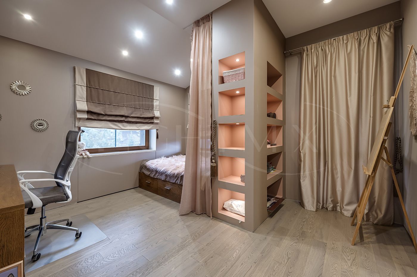 Гостевая спальня с выходом на просторный балкон, три детских комнаты из одной детской выход на балкон, санузел с двумя раковинами, кладовая комната.