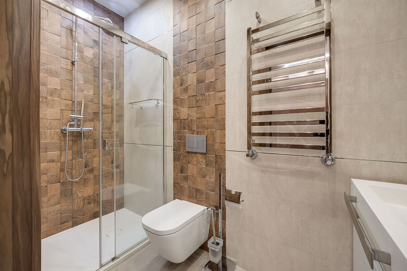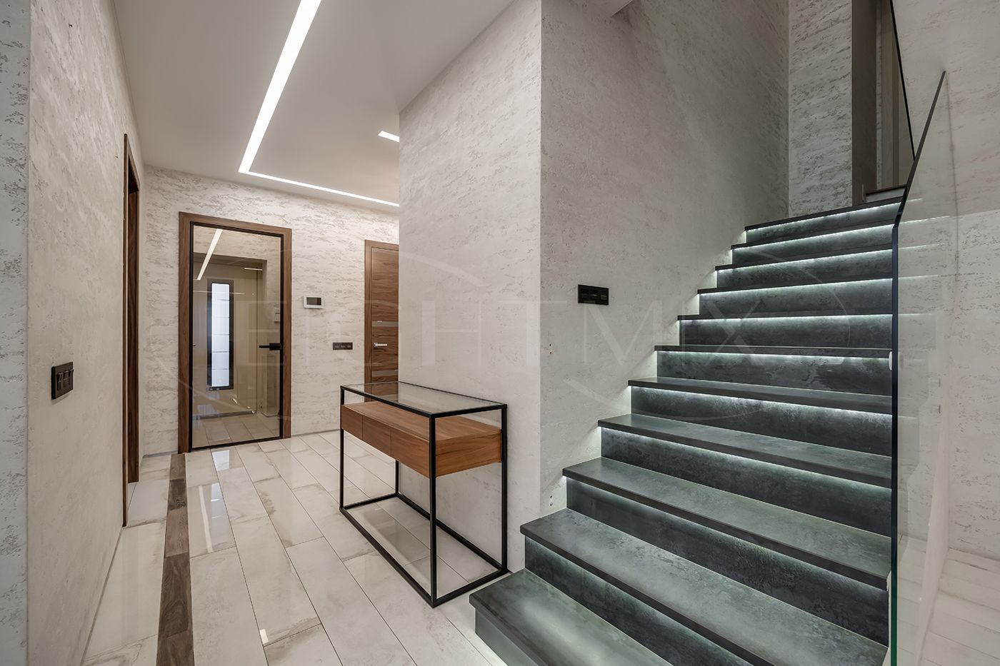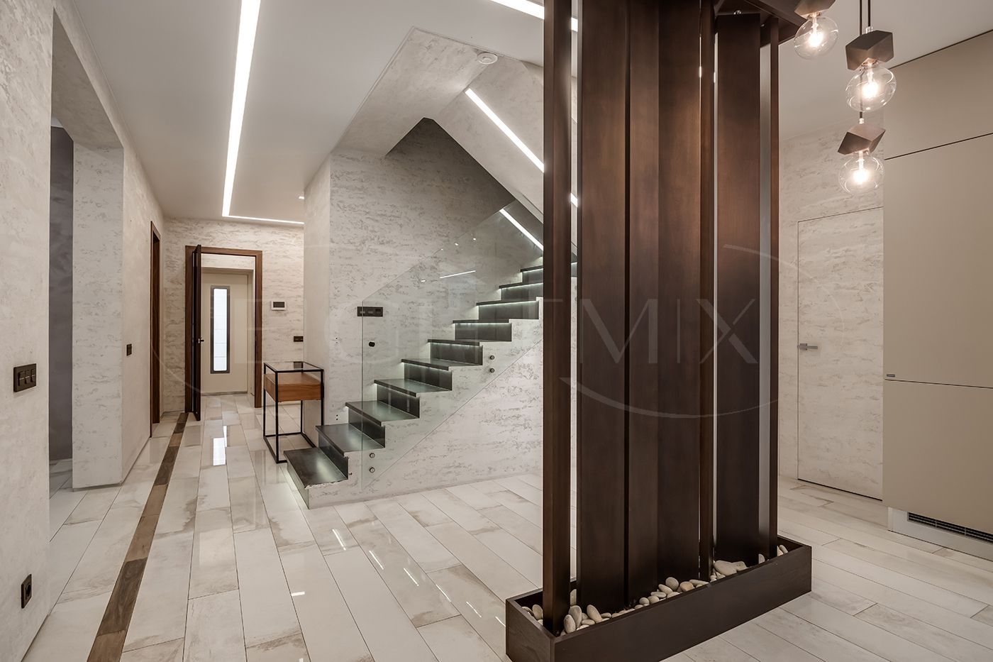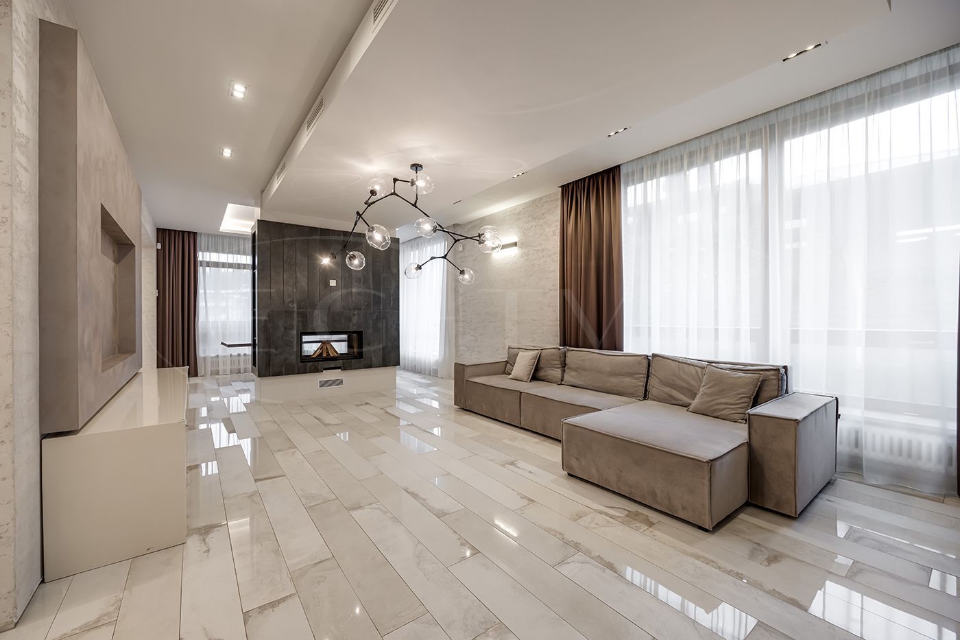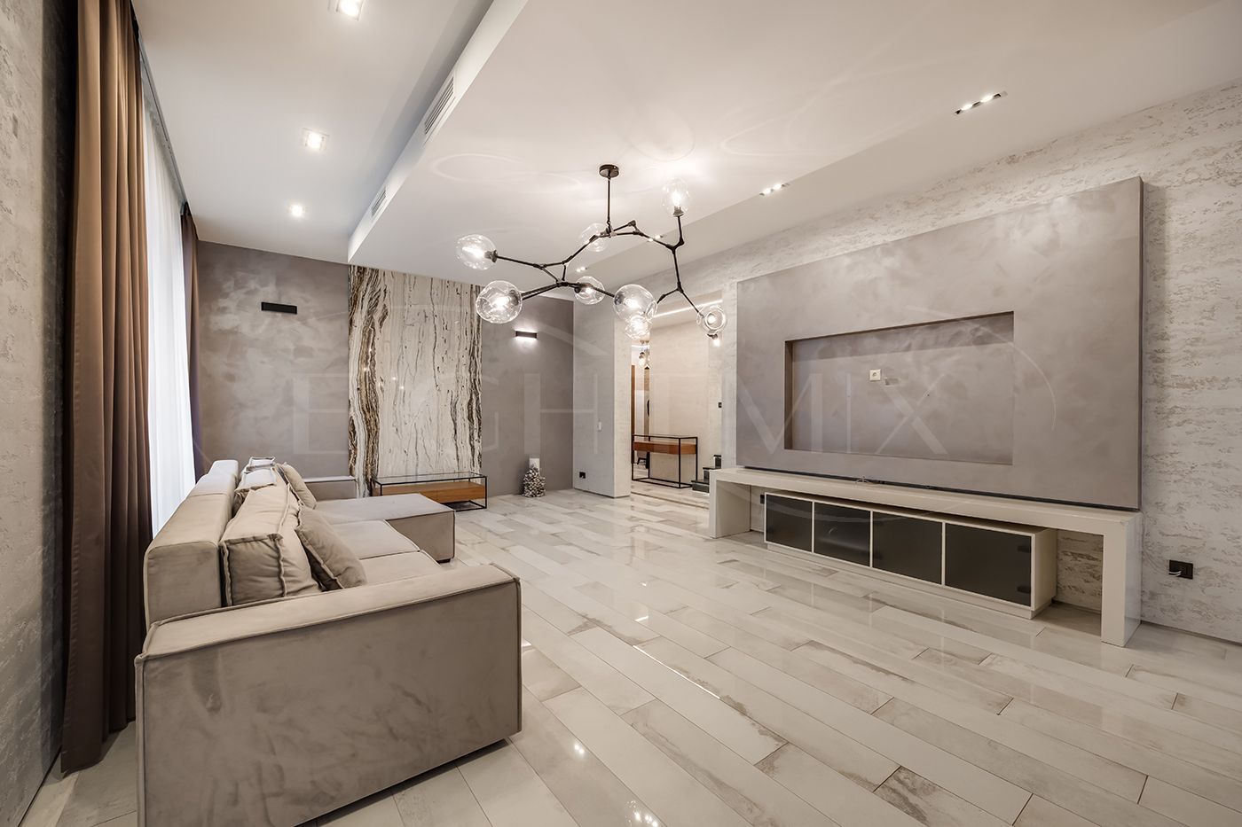 Выполнен качественный дизайнерский ремонт с использованием экологически чистых материалов. Плитка вся в доме Porcelanosa, смесители Noken, система кондиционирования Дайкин, система водоочистки, камеры, охранная сигнализация, стеклопакеты в рамах из лиственницы теплый пол.