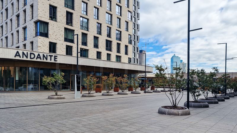 До метро Фили 5 минут пешком. Имеется подземный паркинг.