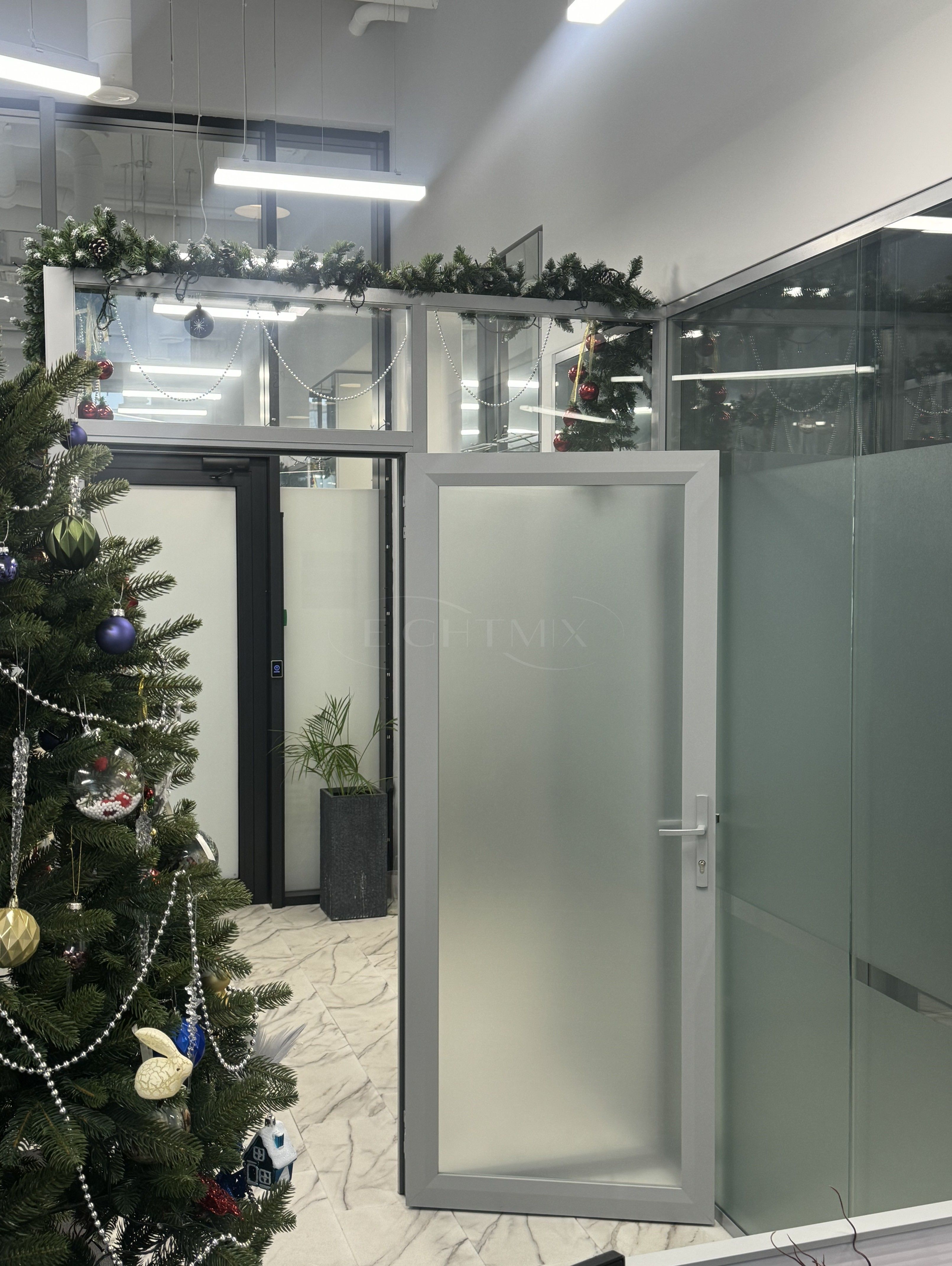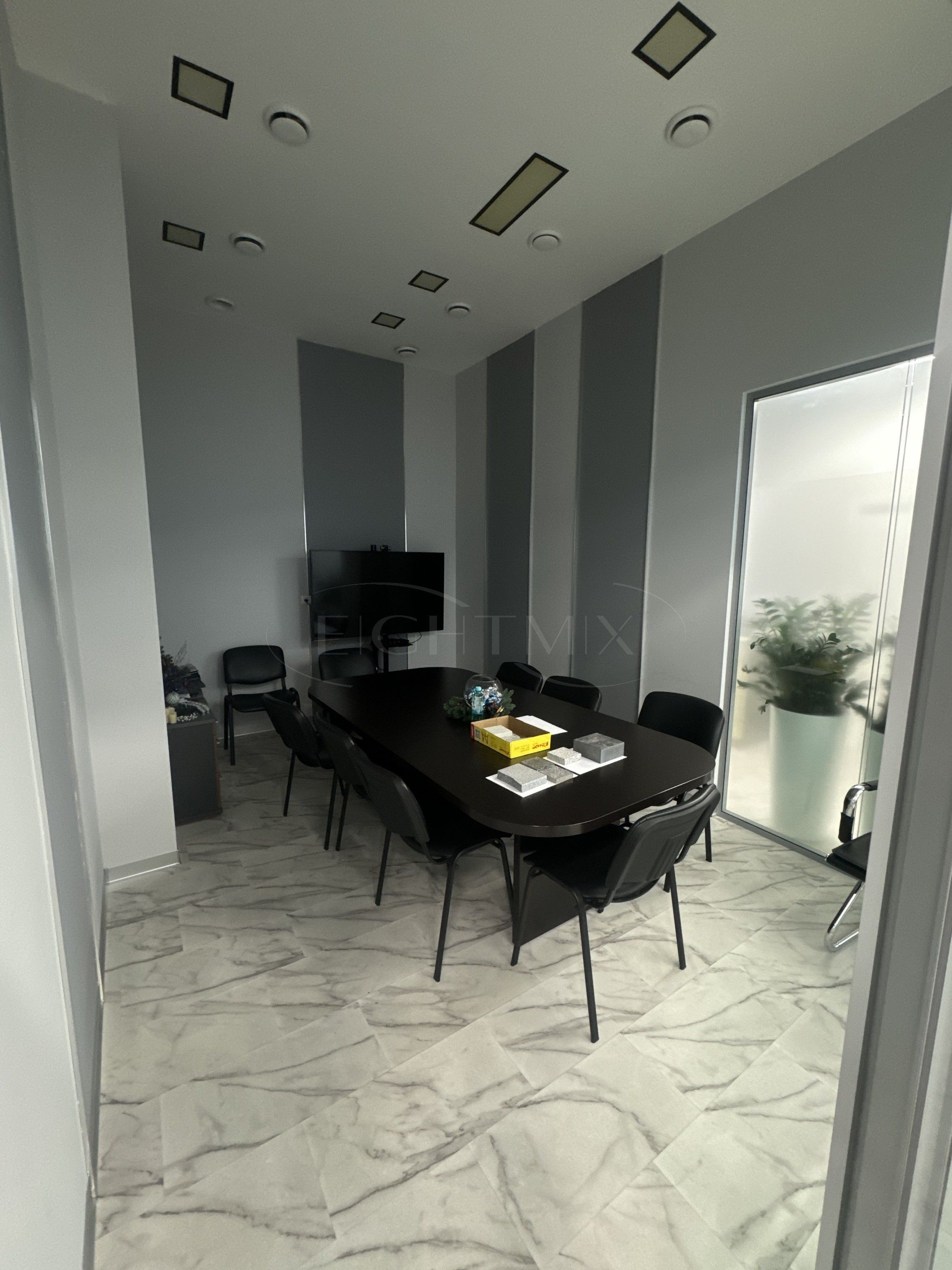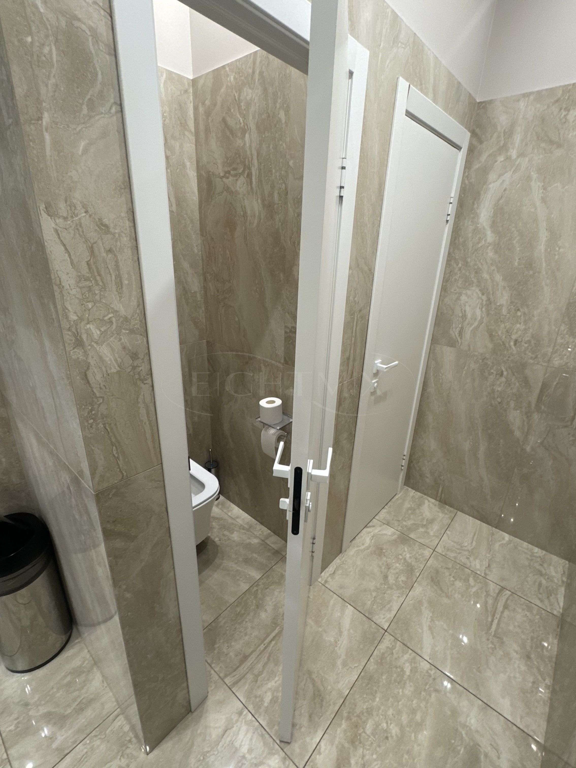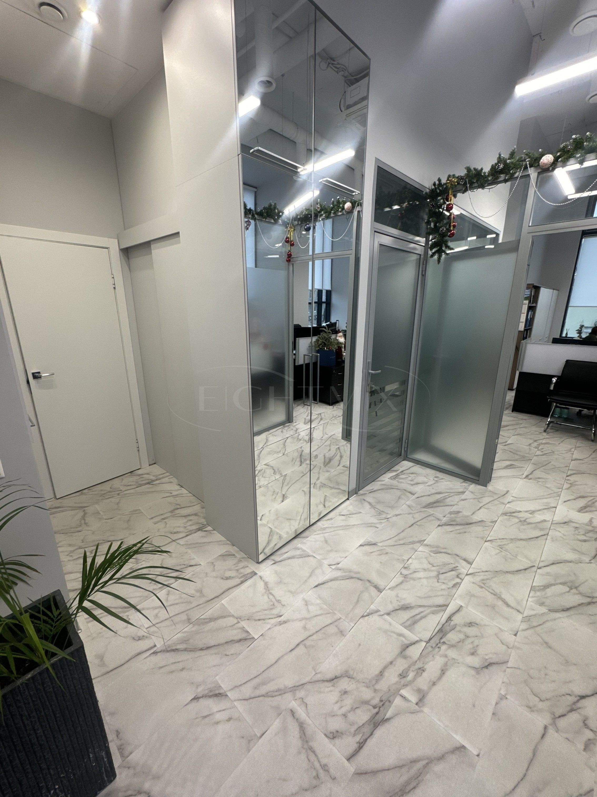 В помещении выполнен евро-ремонт. Санузел на 2 кабины, переговорная, 2 отдельных кабинета, опен-офис, кухня, кладовая, вспомогательная закрытая лестница. Высота потолка 4 метра, увеличенные оконные проемы.