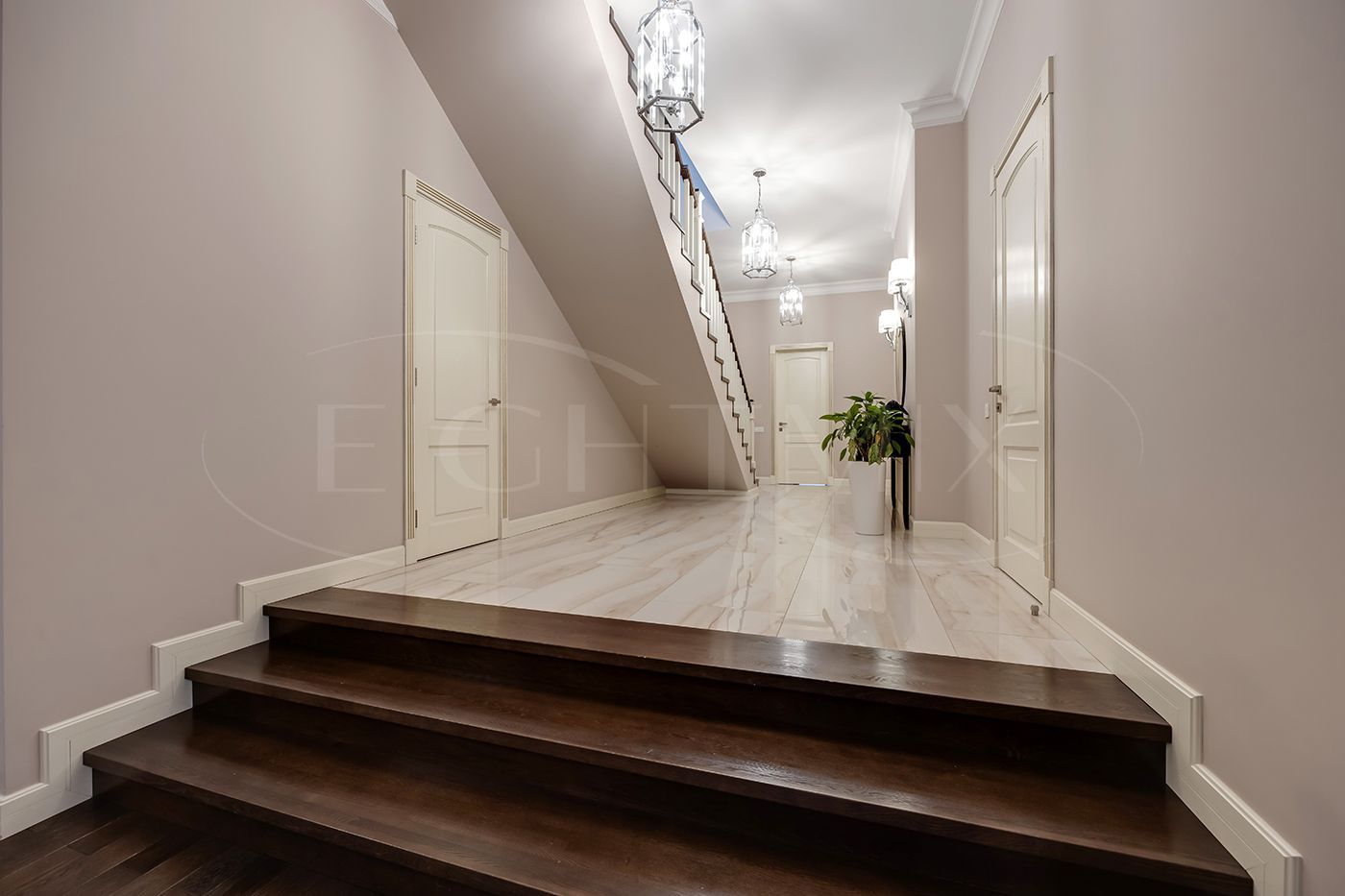 - 2 этаж: четыре спальни, две из которых —мастер-спальни со своими совмещенным с/у и гардеробными.